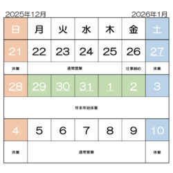 お知らせ 年末年始営業日のご案内(2025→2026)